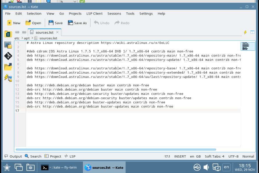 $ kate /etc/apt/sources.list
