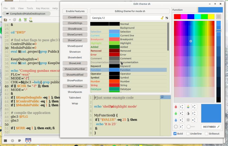 You'll see you can set Color , Bold, and many other properties for certain types of text that will show when a TextEditor.Highlight mode like "gambas" or "sh" is used.