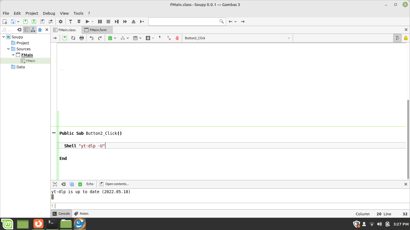 I am no doubt a beginner when it comes to programming. I have a small application that places some text in the console. I would like to place this text into a textbox or textarea, or some other item in the application. I have attached a screenshot of the IDE. In this case I would like to display the text "yt-dlp is up to date (22.05.18)" in the app.