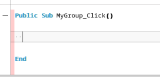 Next if you right click one of the controls part of the group and in the menu go to event click it will create an click event for the group that you can code (see below).