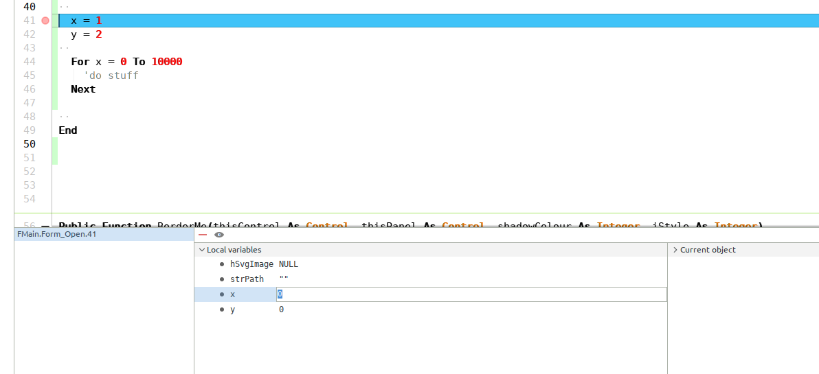 …VB is able to change values in debug mode - but Gambas? How would you do this?