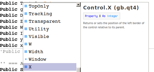 Playing around I typed "Form." and then scrolled through the properties, if there would be an "X" - and got this message: