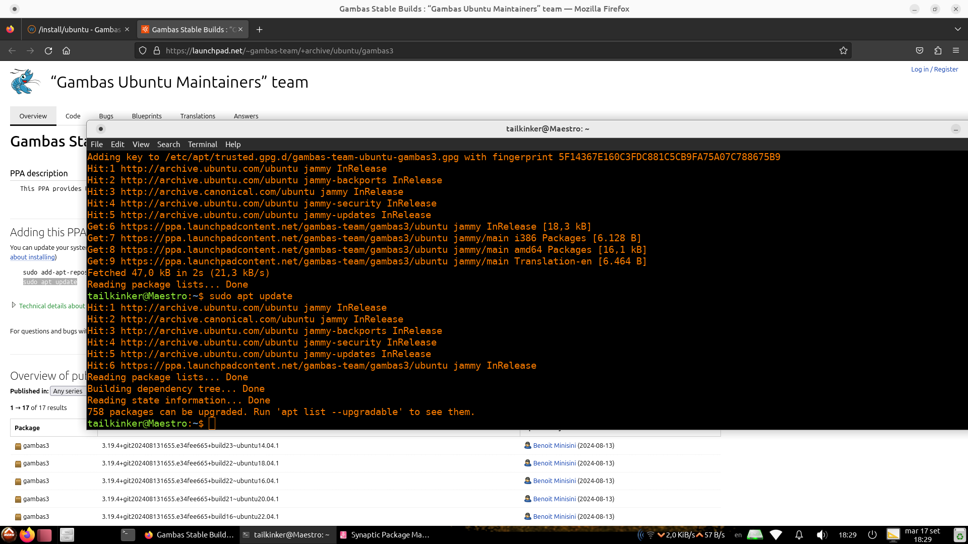 I was able to install Gambas 3.19 from the ppa, but it won't run on Ubuntu 22.04, with Mate desktop.