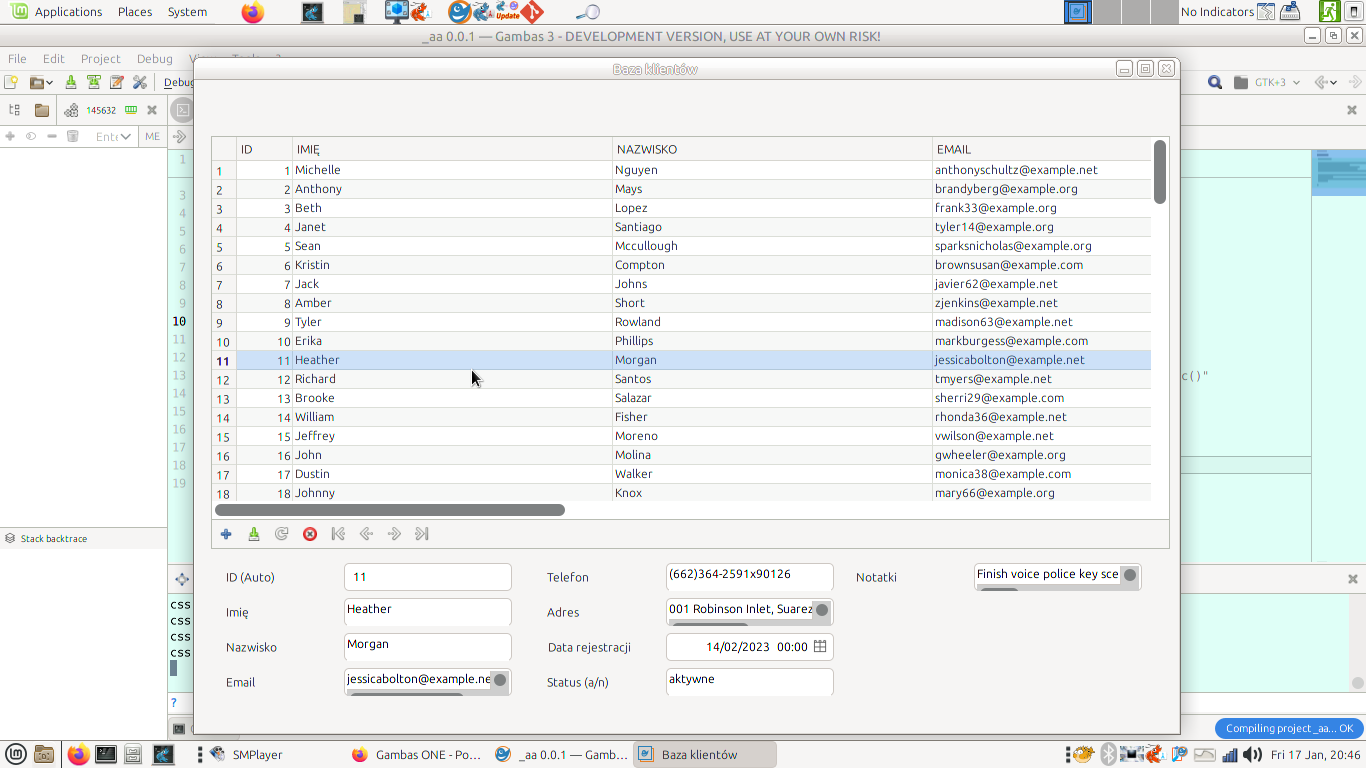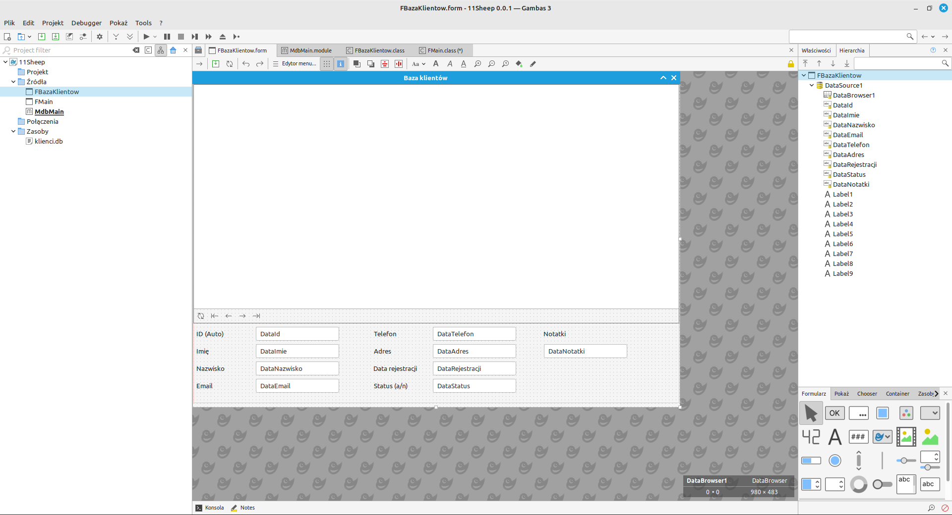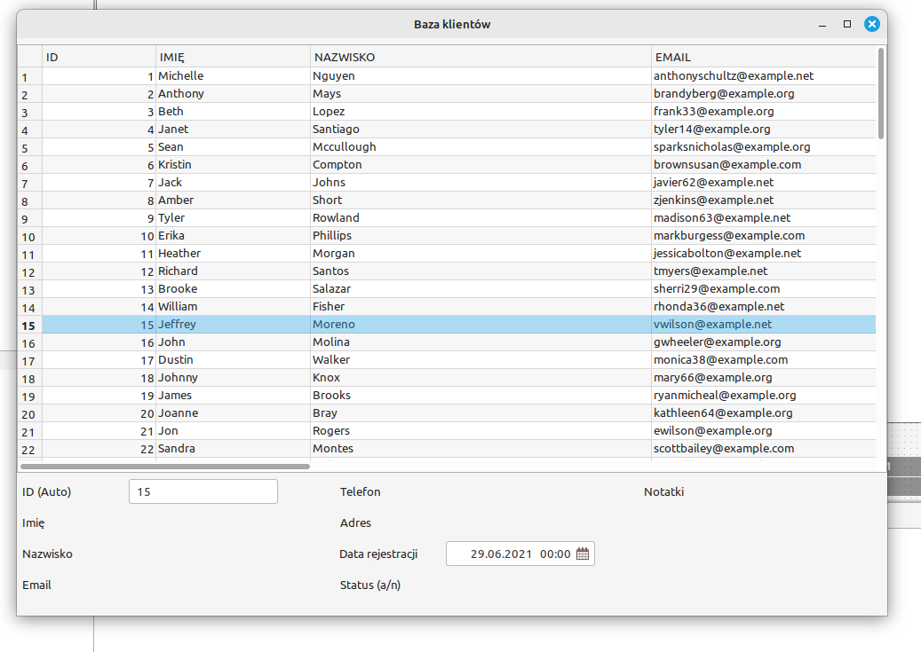 DataBrowser1.Labels = ["ID", "IMIĘ", "NAZWISKO", "EMAIL", "TELEFON", "ADRES", "DATA REJ.", "STATUS", "NOTATKI"]