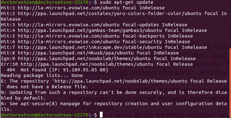 "404 Not Found [IP: 91.189.95.85 80]" ? Could it be that noobslab is no longer working at all or doesn’t have the latest Gambas version.Err:10 Index of /noobslab/themes/ubuntu focal Release