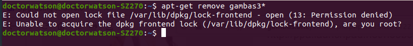 Tried to find out what was wrong using Synaptic (it does have many options) and got “36 broken packages” - all Gambas. Now what ? Decided to remove Gambas altogether. Terminal : “apt-get remove gambas3*” …. ???