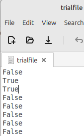 Indeed, this code wrote a 36-lines text file with the word "False" on each line; where later I changed (using Linux Mint Text Editor) some lines to "True", just to check if I can read them back to MyOwnArray.