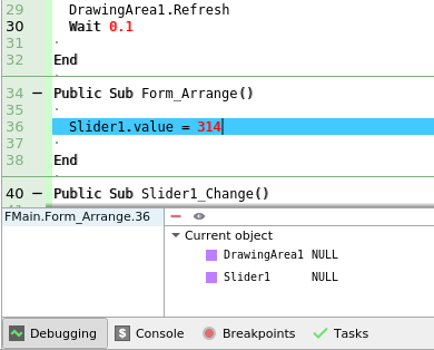 Not sure why it failed, nor why you are creating the slider and drawing area within the program instead of placing and scaling on the form where you want them, setting all parameters, then just drawing the simple lines. I suppose I have much to learn.