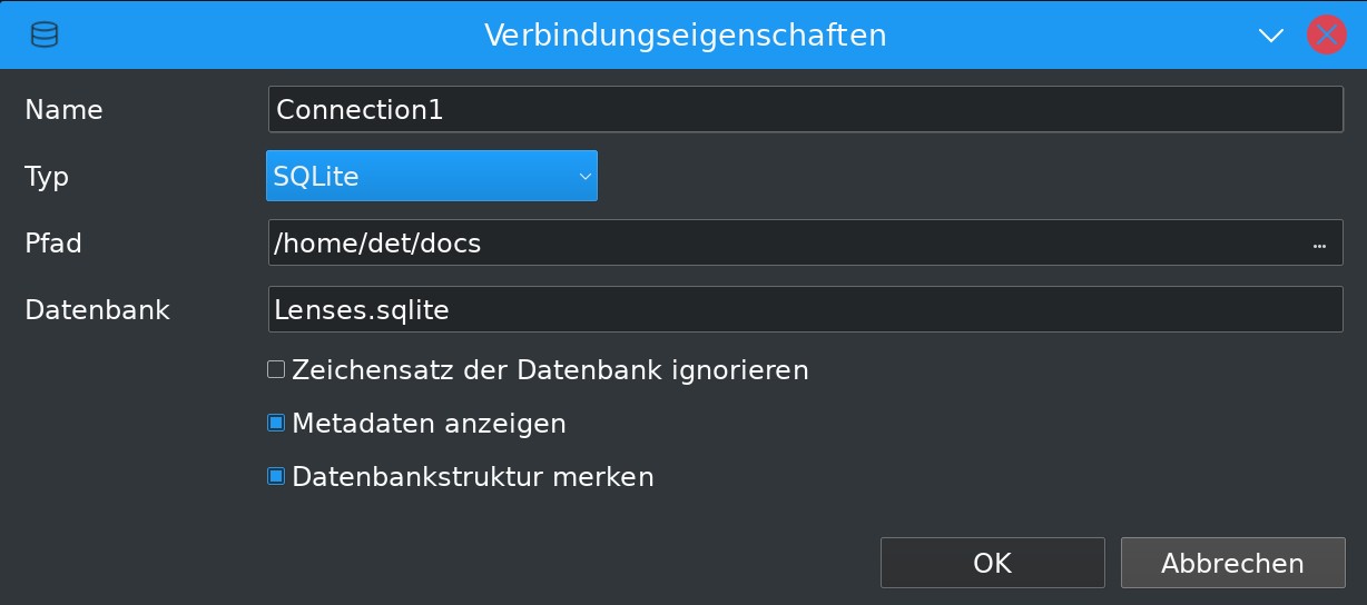 - $con.Name = "Lenses.sqlite" ' Datenbankname ist der Name der Datenbankdatei