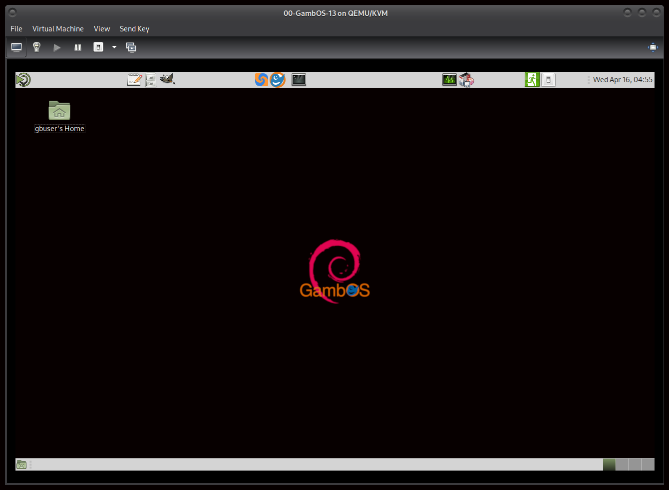 GambOS build 13 finally solved the Gambas getting removed during install. I managed to hack it and now after an installation, Gambas3 is pre installed from a local file repository, exactly like when Live booting. Below the from .iso installed GambOS on QEMU/KVM