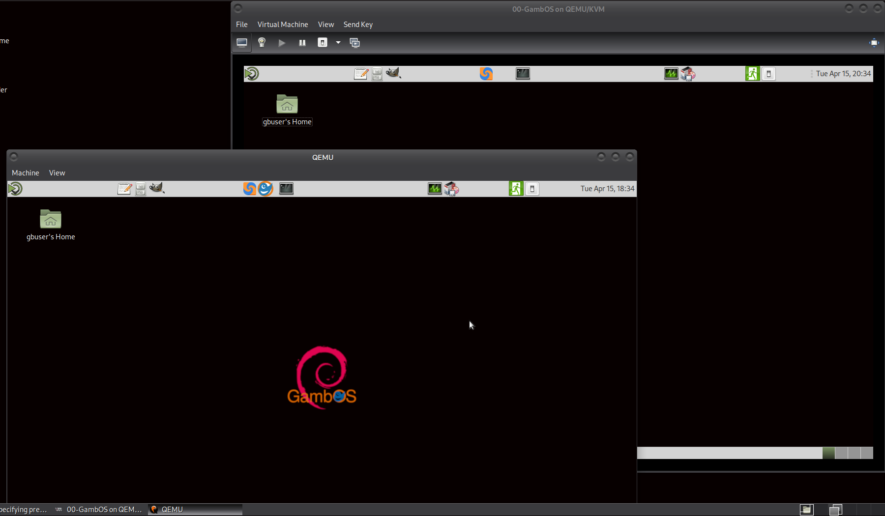 Below, in front, a live boot (kvm -cdrom gambos-bookworm-mate-amd64.iso -m 4G) and in the back an installed .iso on QEMU/KVM. WYSIWYG after fresh install (back) OR live boot (FRONT). Find the differences