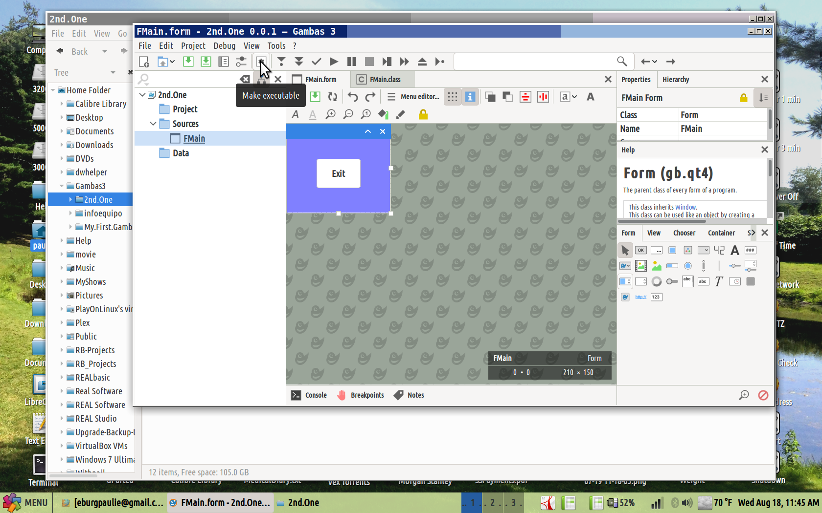EDIT: - 'Compile' is incorrect and should be 'Make executable'. Compile in Gambas is NOT the same a Compile in VB.