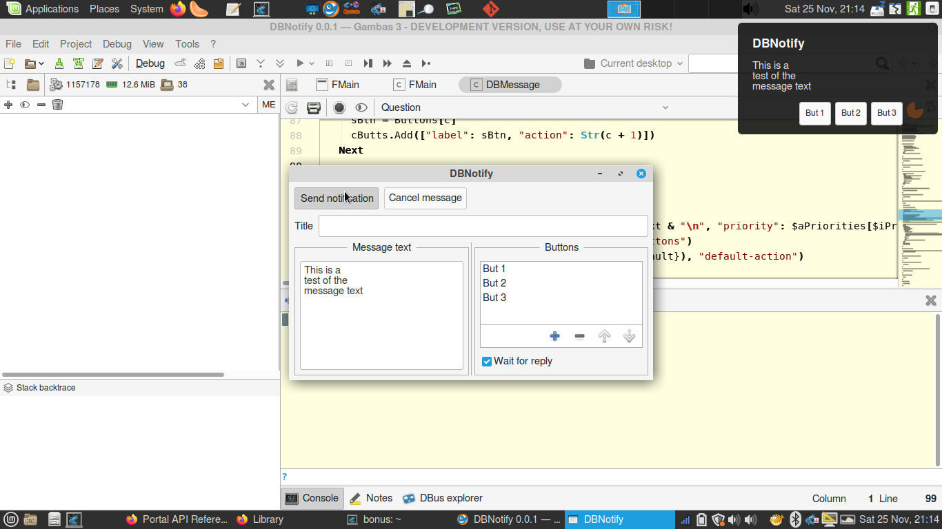 - DBus["session://org.freedesktop.portal.Desktop"]["/org/freedesktop/portal/desktop", "org.freedesktop.portal.Notification"].AddNotification(Application.Id, cNotification)