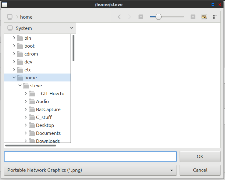 …the dialog opens in the /home directory but expands the /home/steve directory like this:-