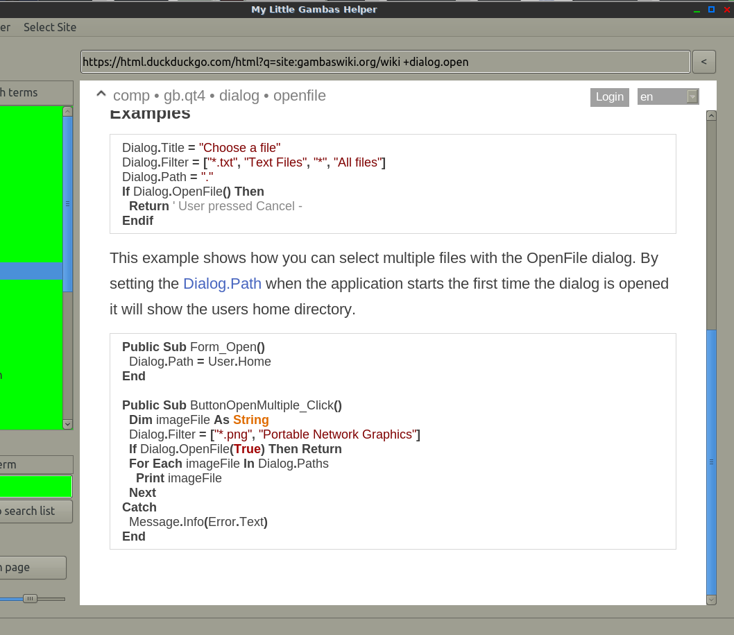 While the Dialog Openfile works quite well, I have not found that the Dialog Path can be set even though the documentation says it can…