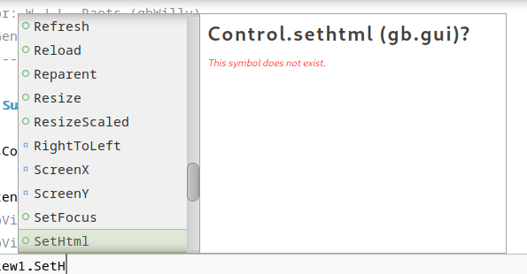 "Symbol does not exist" looks like a wiki bug. It shouldn't really be trying to find Control.SetHtml it should be specifically looking for WebView.SetHtml