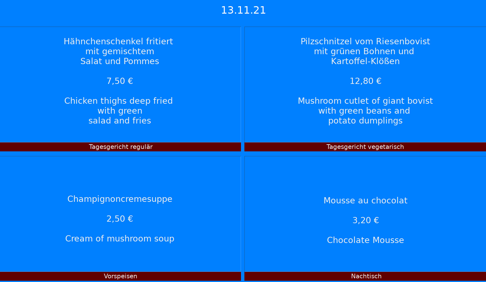 since I have not found a solution so far, I would like to share a problem here. I have a small routine running on Gambas 3.12.2 that displays a menu card