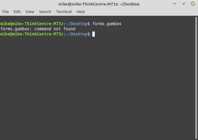 When I type forms.gambas I get forms.gambas: command not found.