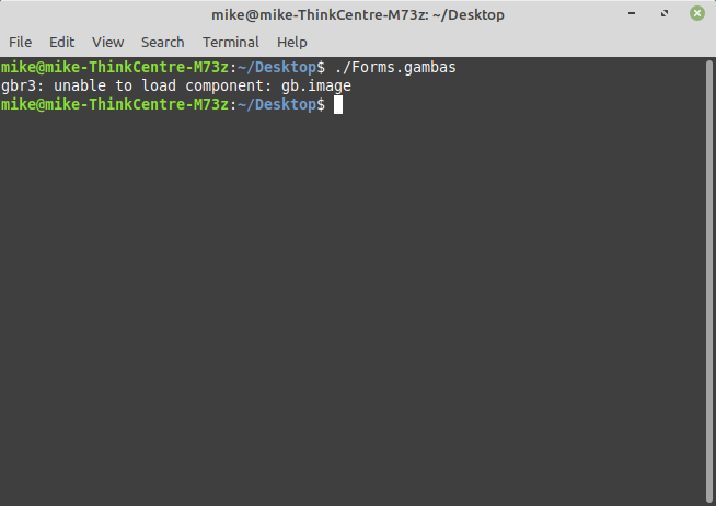 So I followed your lead; I installed gambas3-gb-image, gambas3-gb-gui, and gambas3-gb-form as instructed. Then when I run ./Forms.gambas I get the following error message: