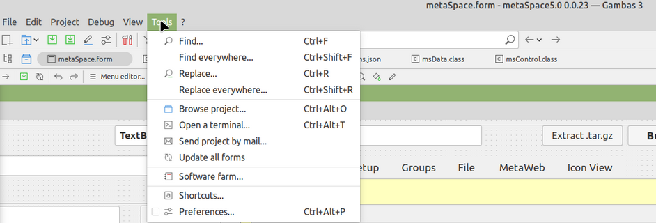 So basically, how do I display, build and activate my desired topLeft of form menus, say like the gambas ones:-