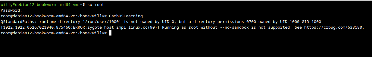 Maybe I'm doing something wrong but I can't run any Gambas executable from the terminal as root. Here are some of the results: