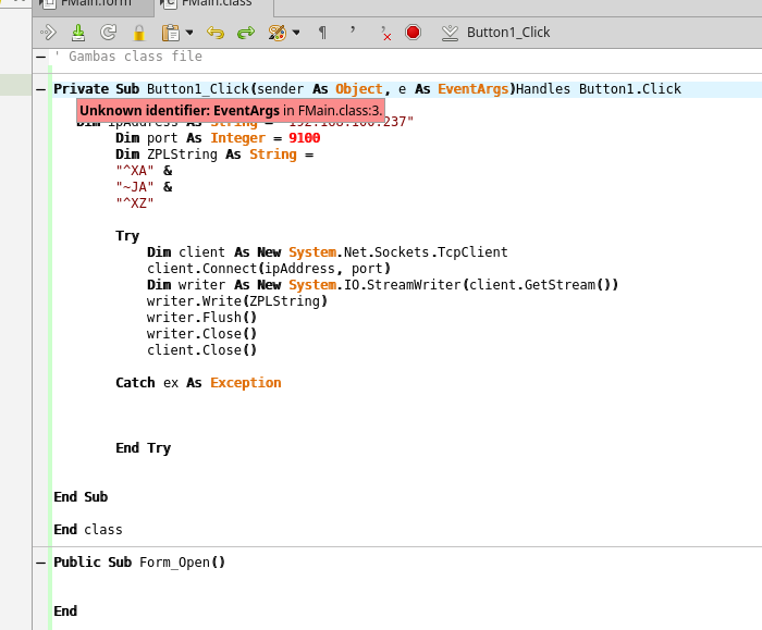 I created a form with one button, my purpose is to send string over tcp/ip…