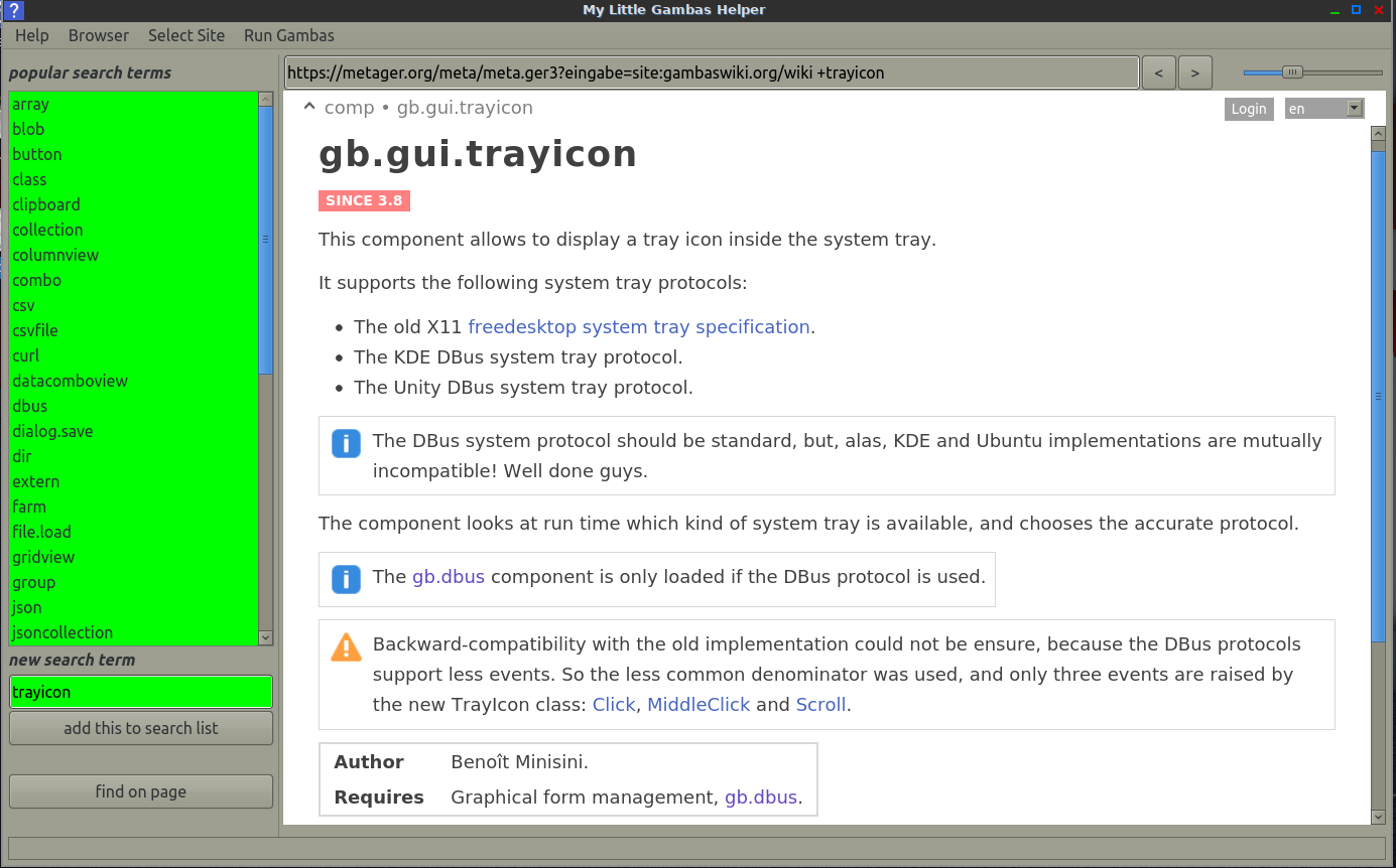 - Gambas version