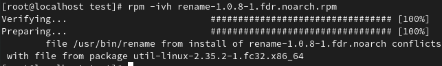 [test@localhost ~]$ rpm -ivh rename-1.0.8-1.fdr.noarch.rpm
