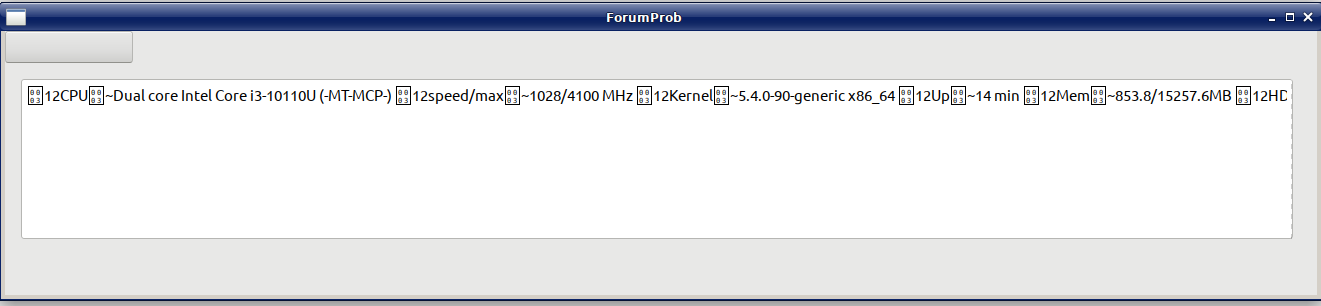 Right now the 3 screens that I have are called Network, Hardware, and Software. All 3 work in the IDE, but when I make an executable, called forms.gambas, the Network and Software screens work fine, but the Hardware screen is barely filled, and the data that is filled has non alphanumeric characters mixed in with the data.