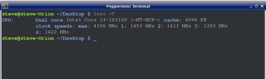 "CPU:\n Topology: Quad Core model: Intel Core i5-3470S bits: 64 \n type: MCP L2 cache: 6144 KiB \n Speed: 3260 MHz min/max: 1600/3600 MHz \n Core speeds (MHz): 1: 3306 2: 3307 3: 3245 4: 3460 \n"