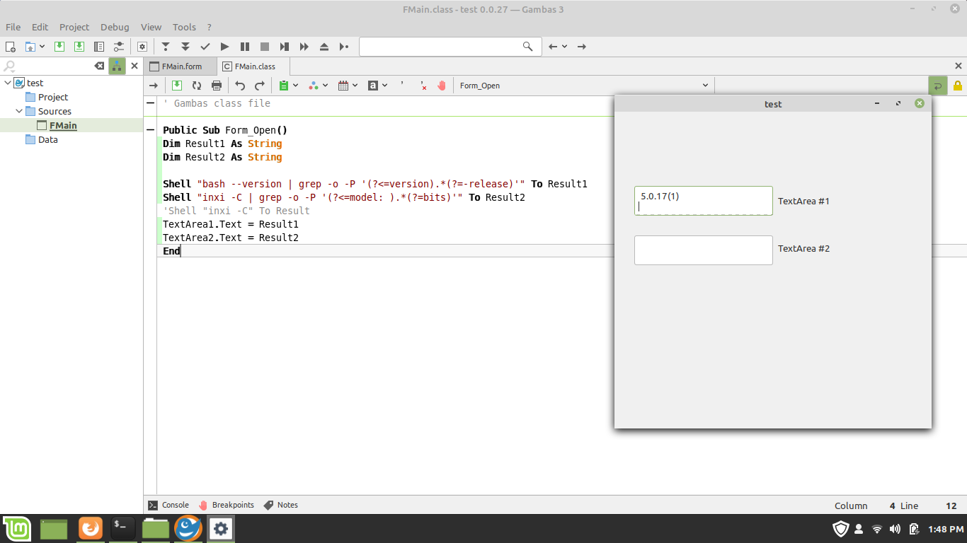 - From IDE is from the GAMBAS environment. Both text areas are filled in.