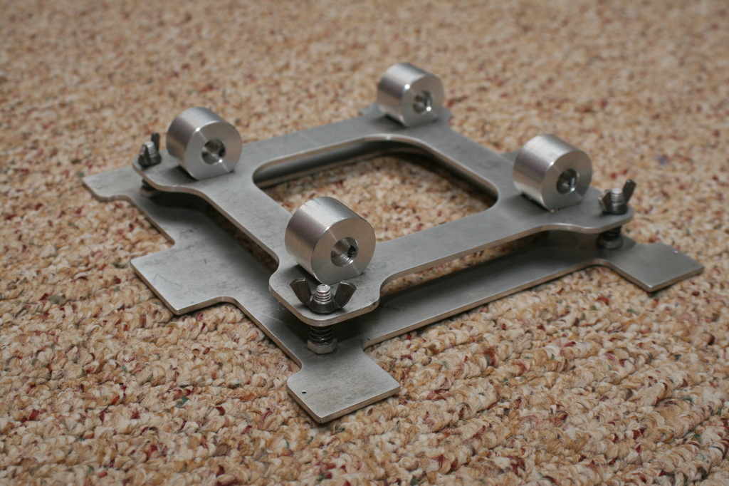 I think I used 1/4-20 UNC screws and wing nuts for the adjustment. This will give me about 1.27mm of height adjustment per revolution. I probably will need to replace them with 1/4-28 UNF or maybe even 10-32 UNF. They would give me 0.91 or 0.79mm adjustment respectfully. I'm not sure what they used on my Ender, I expect they are 1mm pitch or less. They are a pretty small diameter screw.