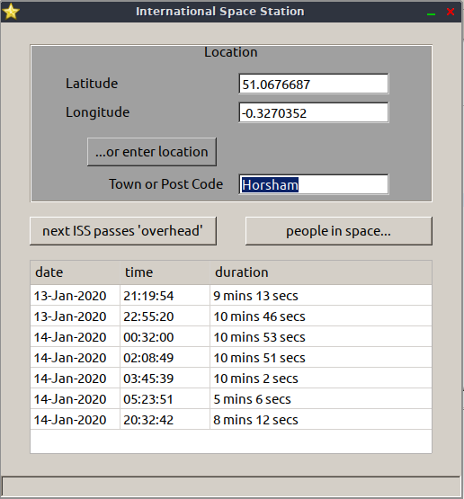 It will also list the names of the people currently "in space", …just because this was an easy thing to add.