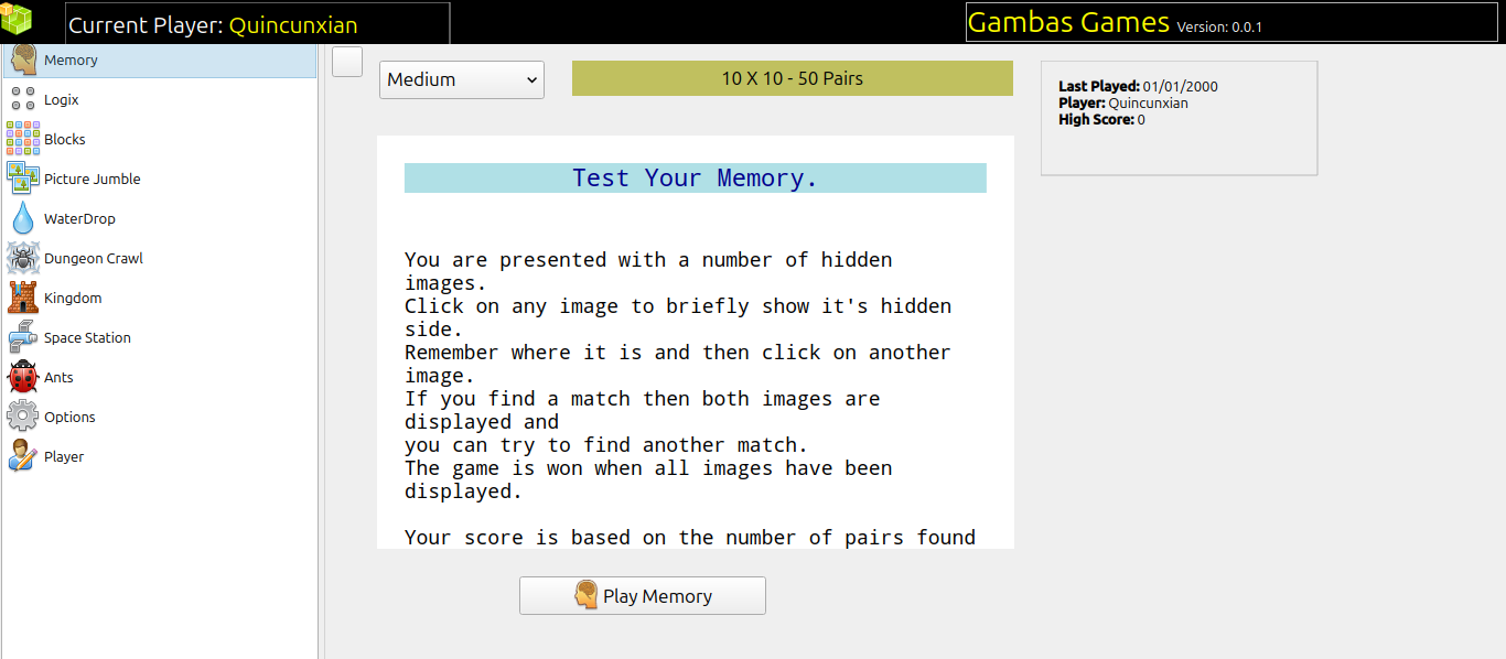 The application has a long way to go but the memory game ( more or less ) works.