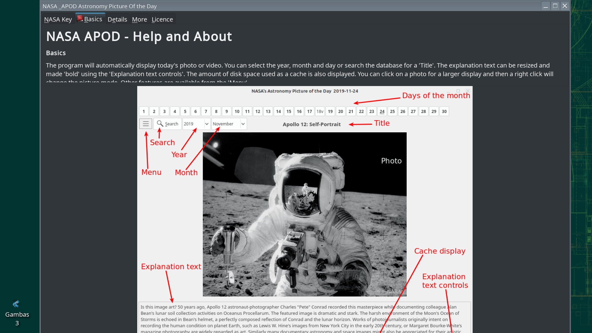 IMPORTANT: - If you want to try this program you will need to get a NASA API key. It's VERY easy and free and will be issued on line. The program will guide you.