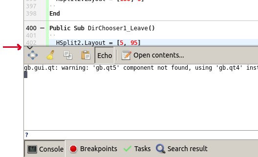 "gb.gui.qt: warning: 'gb.qt5' component not found, using 'gb.qt 4' instead"