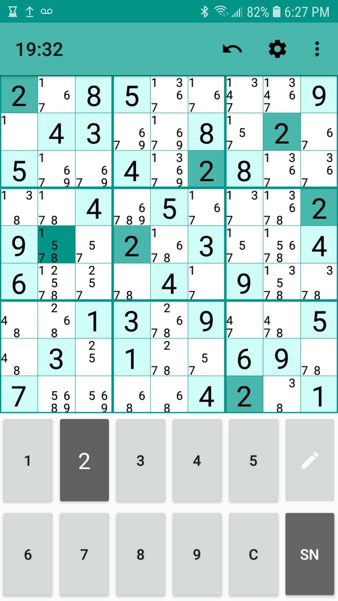 And here I had the option of placing the final two 6's and final two 2's in two different ways to produce proper solutions. Using the Input Help toggle, I opted to place them in 'incorrect' locations. Then closing off the stats window and clicking on Medium level I got the same game, just different starting hint numbers.